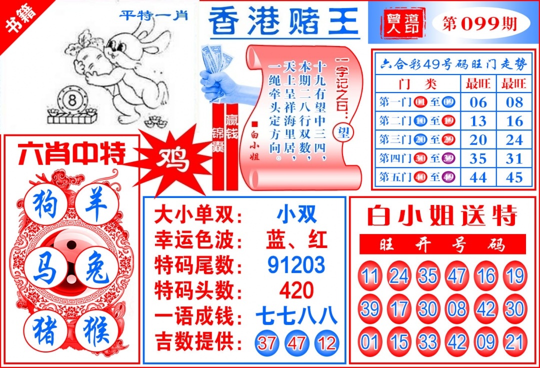 099期:绝杀【蓝波】绝杀【0头】开:狗43准